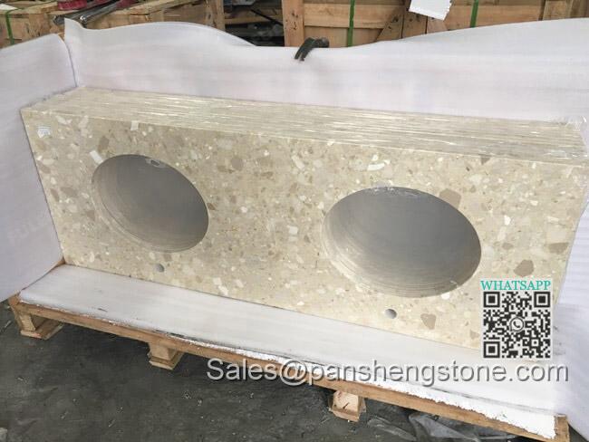 Beige engineered marble vanity tops double sinks